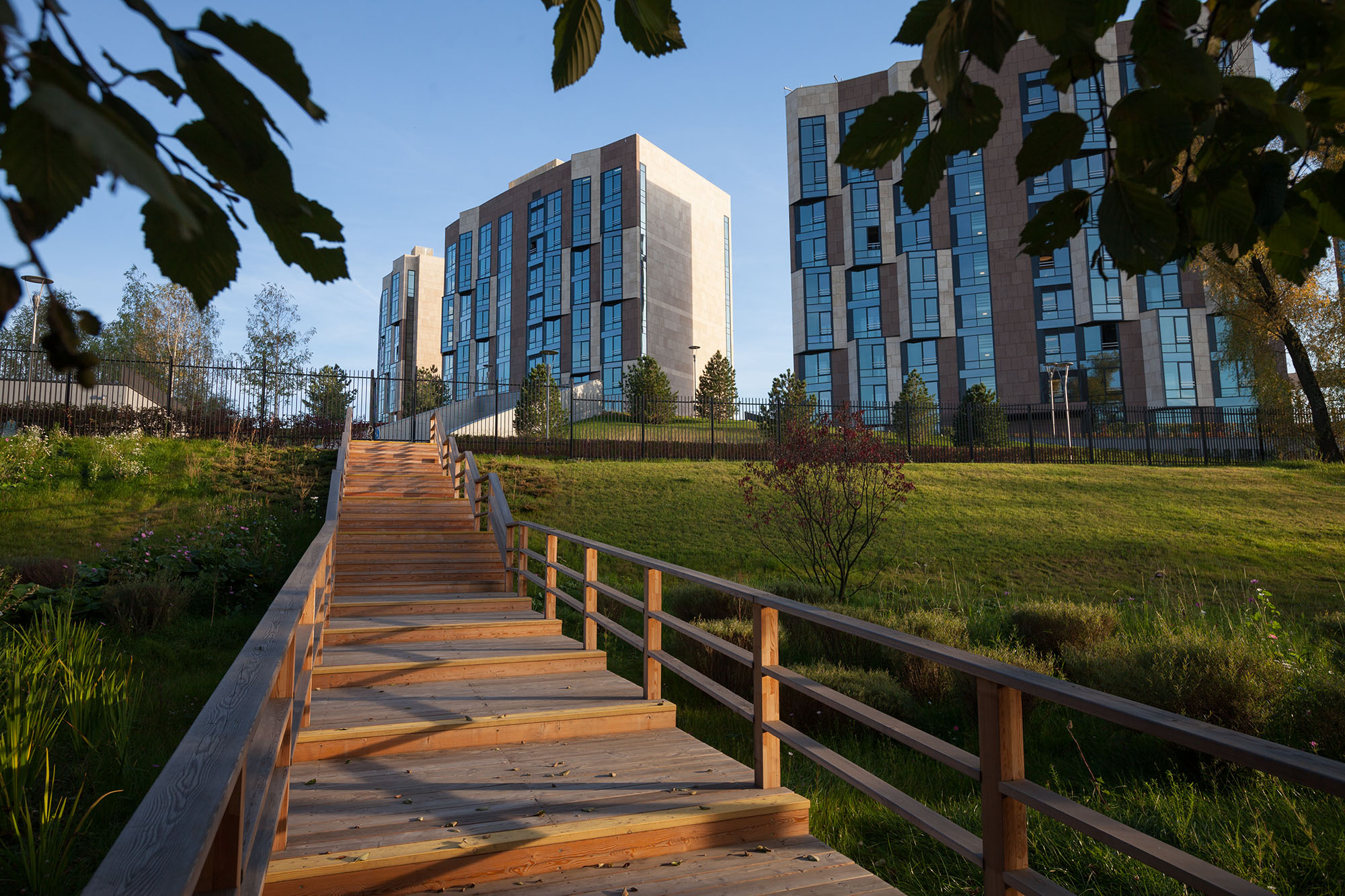 В пешей доступности от Сколково Парк находятся знаковые, но не привлекающие к себе лишнего внимания инфраструктурные, рекреационные, образовательные объекты.