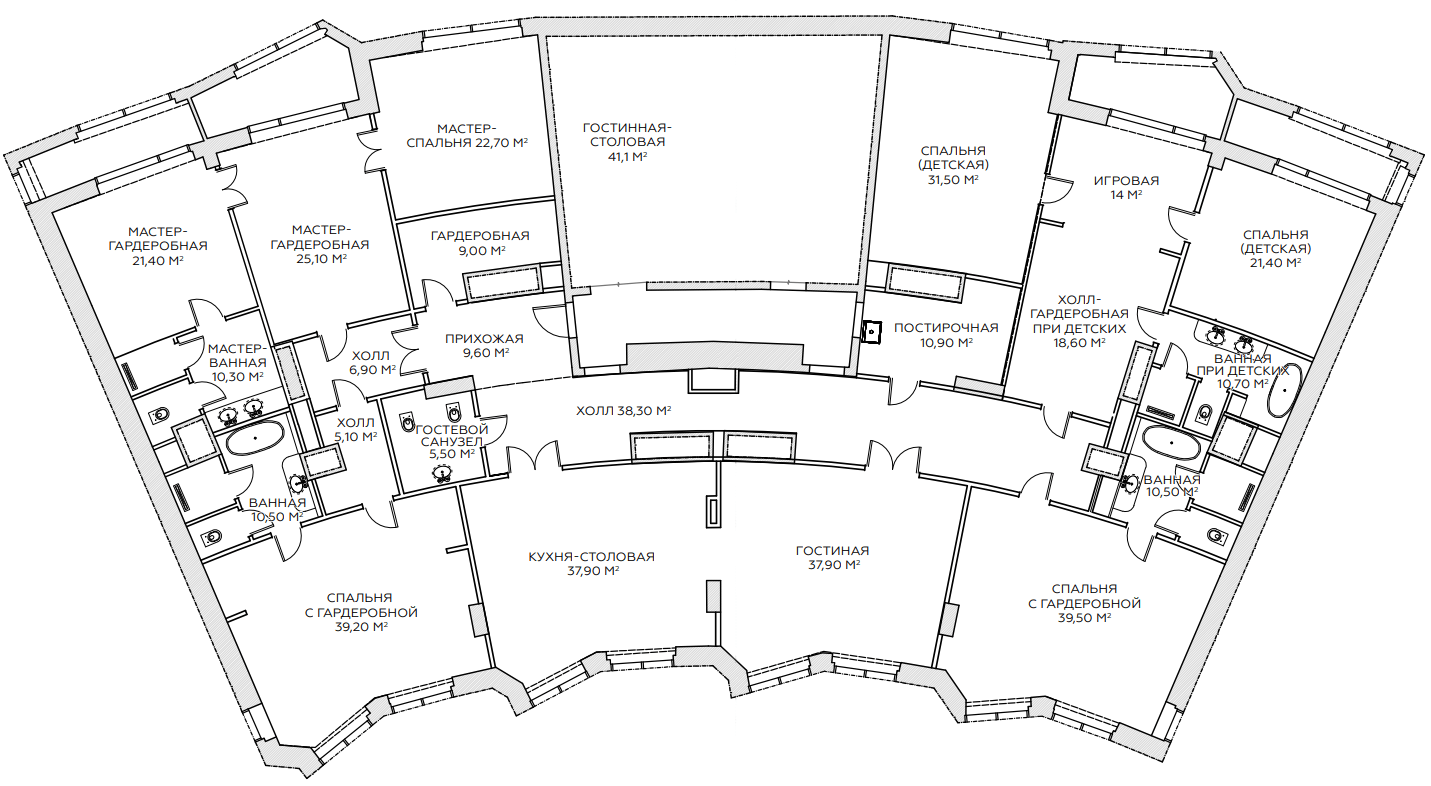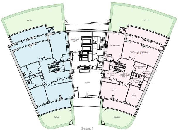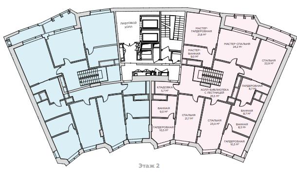 Двухуровневые квартиры с собственным выходом на приватное патио и видами на набережную и внутренний двор. Площадь около 380м2 позволяет обустроить пять отдельных спален.